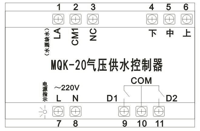LA—水源缺水控制(和CM1短接后,控制器正常工作;和CM1斷開后,水泵停止工作,缺水保護)